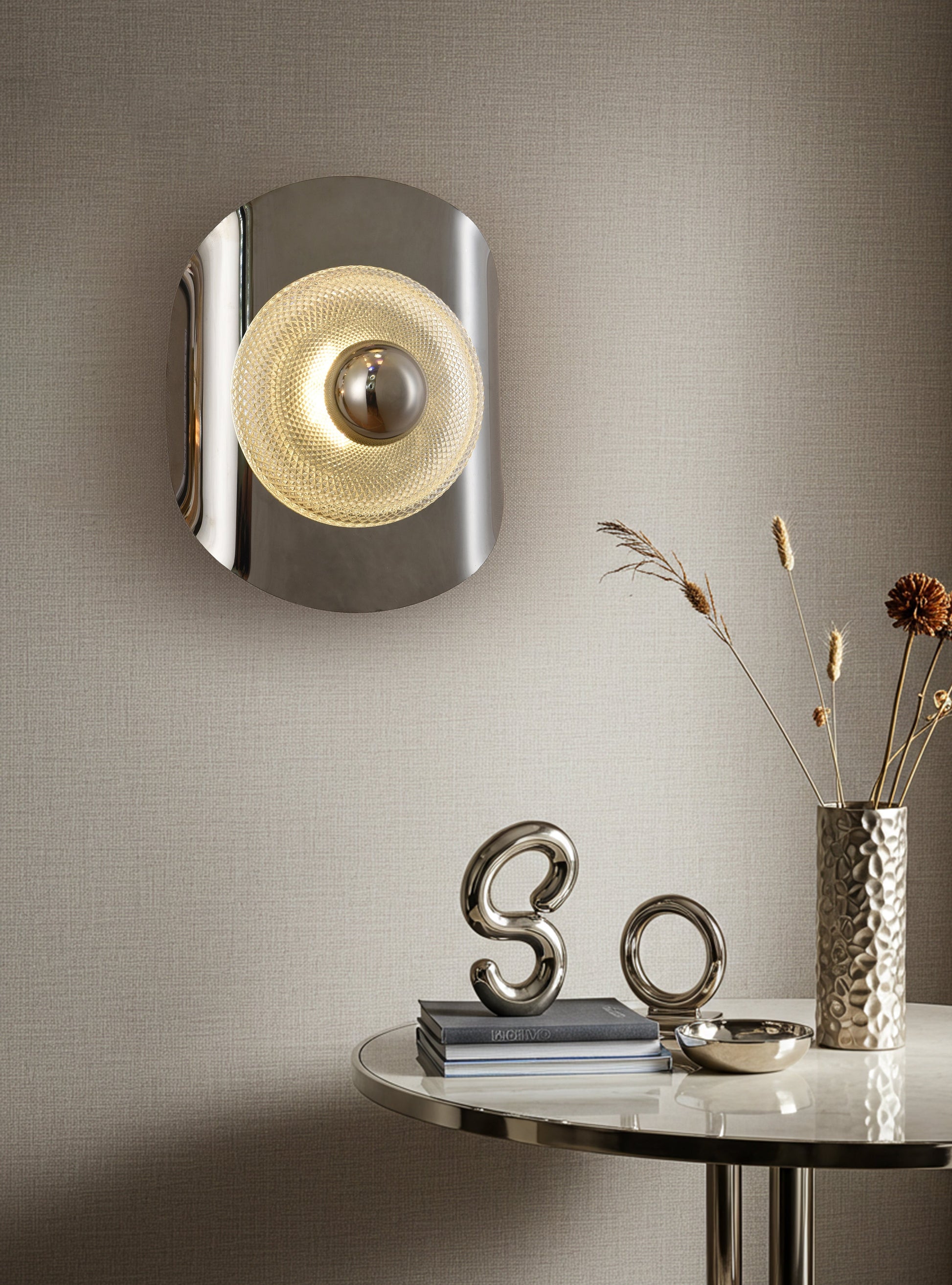 Atolye's Delta wall lamp is a model where metal and glass meet.