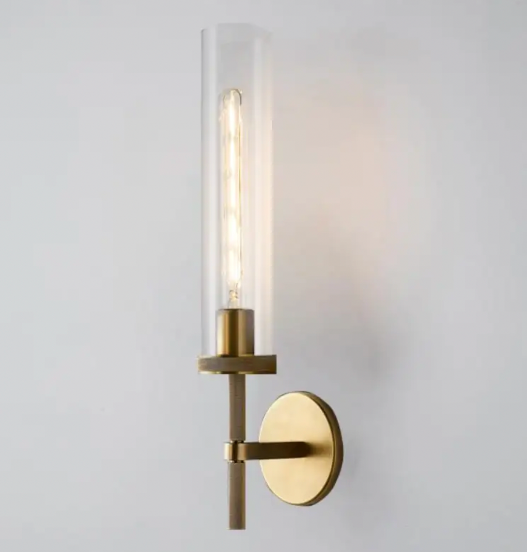 Ohio wall sconces, which are offered for sale in two different colors, have brass and dark antique colors.